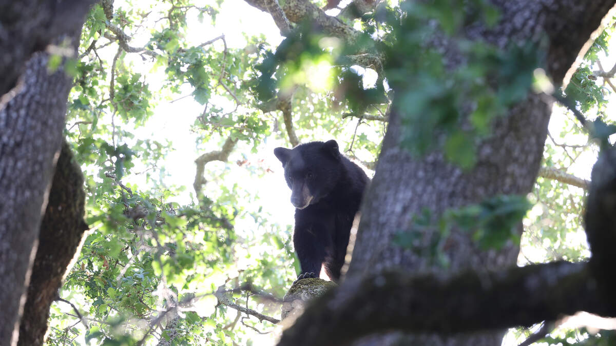 Well, in North Carolina, it just took a couple of jelly doughnuts. A few nights ago, an animal rescue crew placed a couple of jelly doughnuts and a few sardines at the base of the tree to, hopefully, lure the bear out of the tree. It worked! After an hour or so the bear lumbered down.