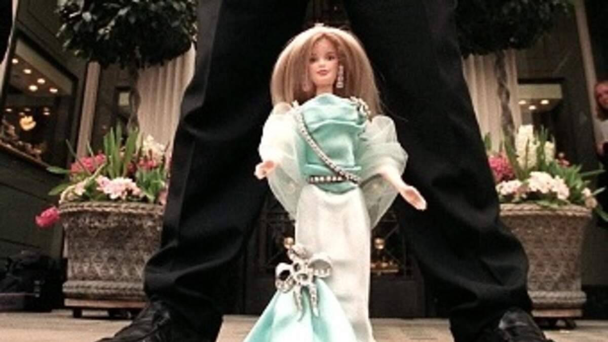 LONDON, UNITED KINGDOM - MARCH 8: Under the eye of a security guard, 08 March in London, Barbie, the world's most celebrated doll, marks her 40th birthday with a unique diamond-encrusted dress. The 50,000 pound (80,000-dollar, 70,000-euro) gown with its