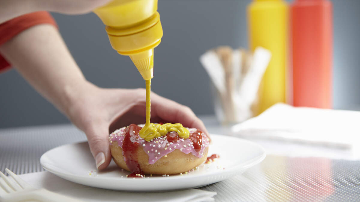 The donut is a zety take on the classic glazed variety with yellow cake crumbles and a mustard-inspired coating.