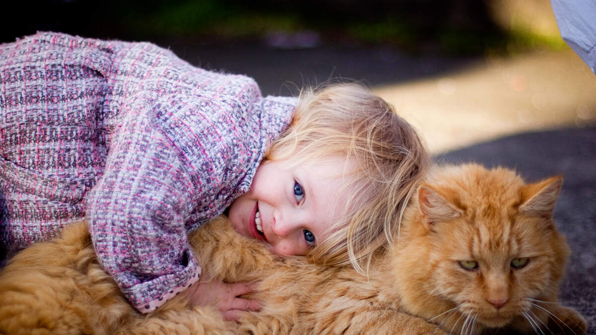3-Year-Old Girl sings "You Are My Sunshine" to the Family Cat While Cradling the Kitty in Her Arms. Photo: Moment RF