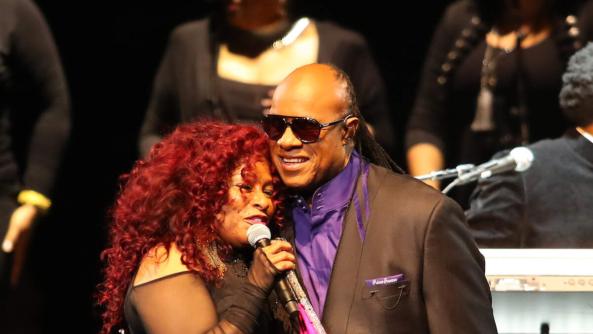 Once Stevie got behind the keyboard the party was in full swing, he and Chaka did her hit, "Tell Me Something Good", and then they battled to belt out one of his Motown classics, "Signed, Sealed, Delivered."
