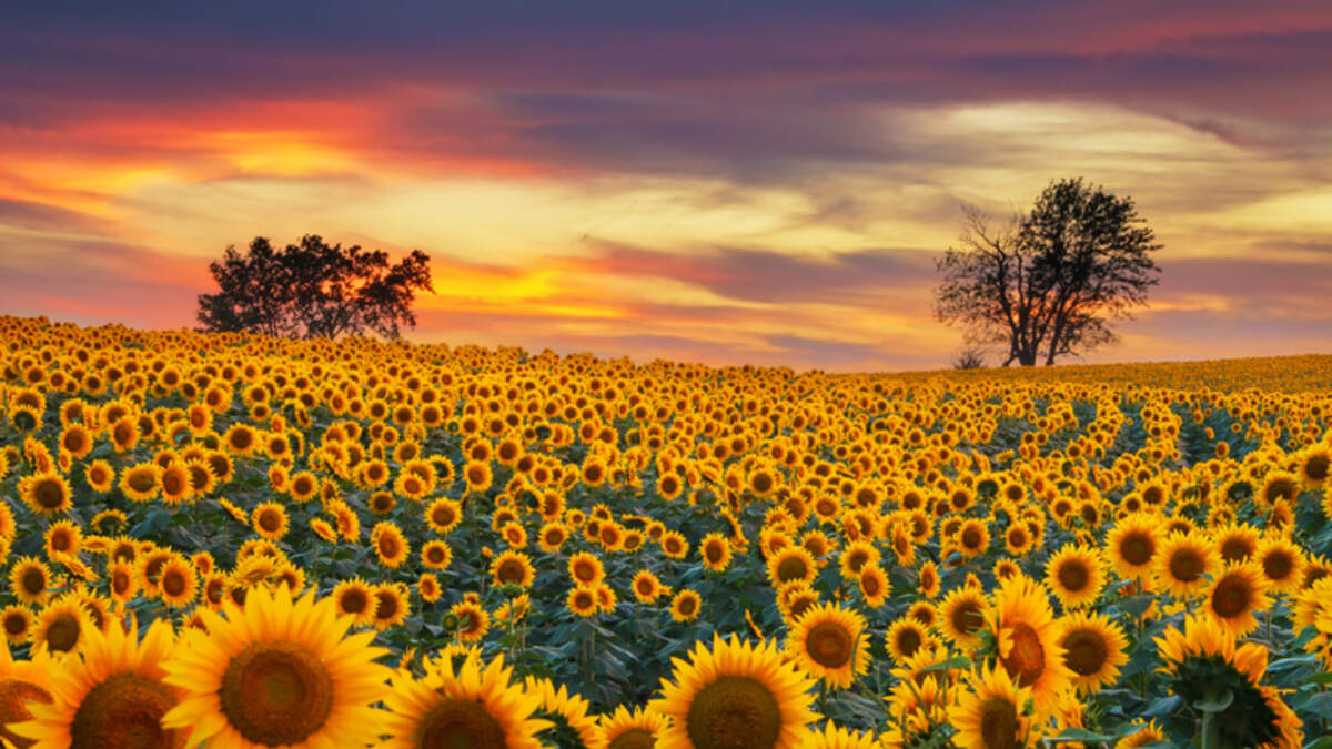 That's an 80-acre field covered with roughly 15,000 sunflowers per acre.