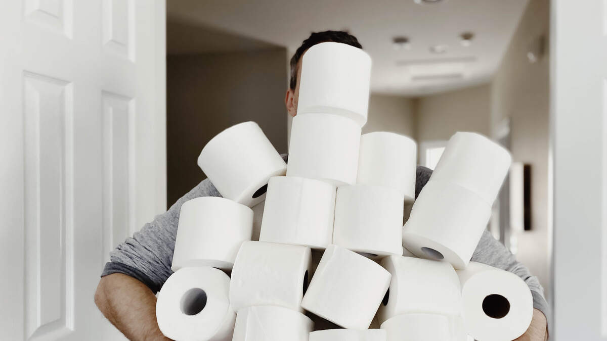 Man Carries Heap of Toilet Paper
