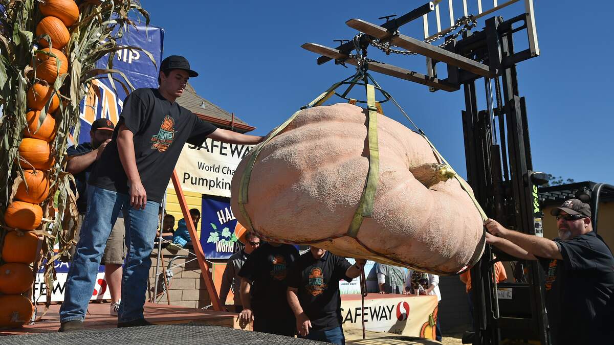 The big, and we do mean big, winner of the pumpkin weigh-off this year is Travis Gienger of Anoka Minnesota. On Monday his prize winning pumpkin weighed in at 2,560 pounds…a new national record. Gienger will take home $23,040 in prize money. He drove 35 hours to deliver his gourd to Half Moon Bay.