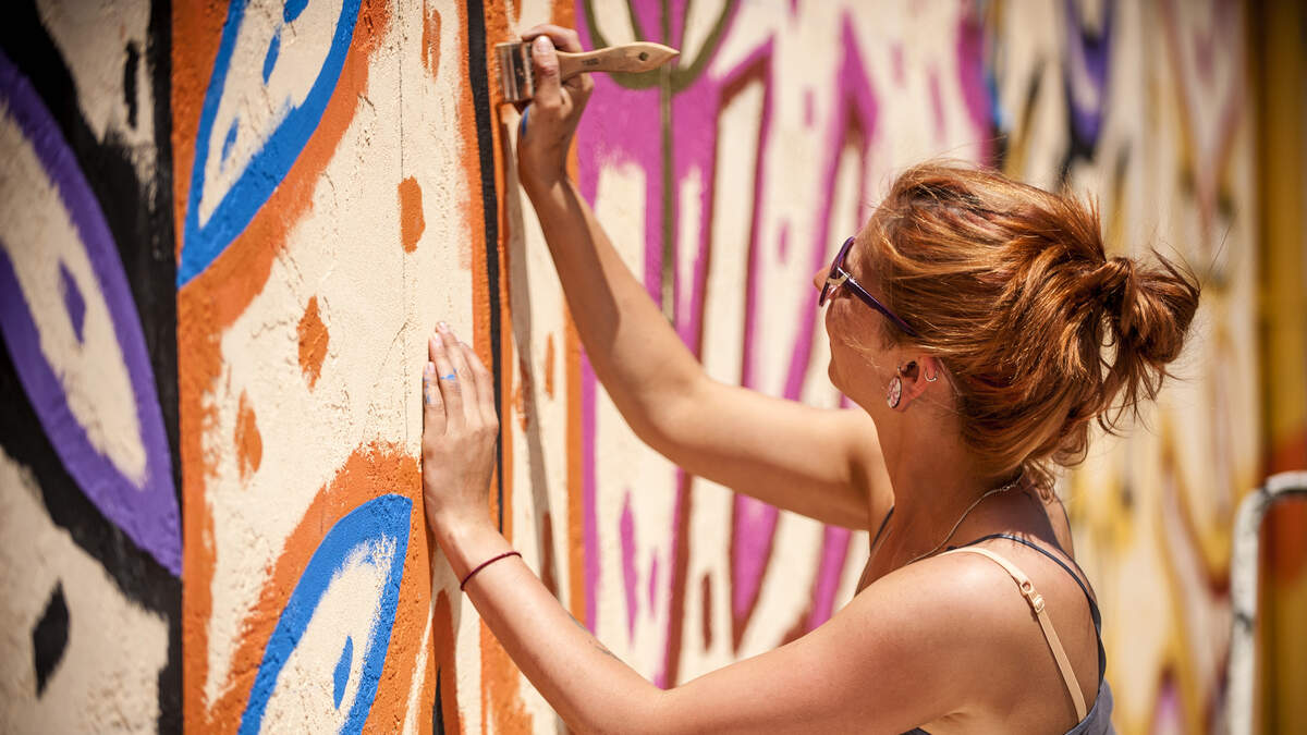 The colorful work of art in Sacramento is called "Essential Heroes."