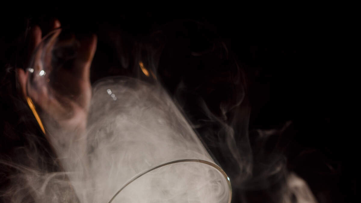 The Kaiburr Crystal, a drink honoring the Star Wars universe, is served in a carrier complete with mechanical doors, and smoke.